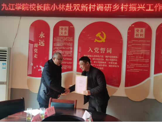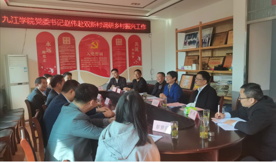 2021年7月20日,九江学院驻村帮扶工作队正式入驻武宁县鲁溪镇双新村,开展巩固拓展脱贫攻坚成果同乡村振兴有效衔接工作。我校党委和行政部门高度重视驻村帮扶工作,校党委书记赵伟、校长陈小林、党委副书记魏立平、副校长杨耀防、纪委书记李广欣等党政领导先后赴双新村调研乡村振兴和驻村帮扶工作。要求全校各部门思想上高度重视,齐心协力做好驻村帮扶工作,全方位对双新村进行帮扶。